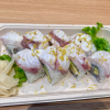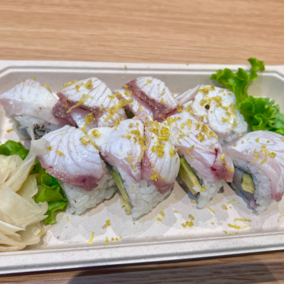 Ricciola, avocado, ricciola esterno scottato, scorza di limone grattuggiato