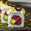 Tonno crudo, avocado, salsa piccante, olive philadelphia, granelli di pistacchio